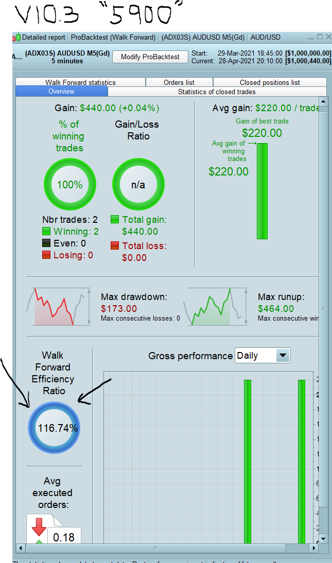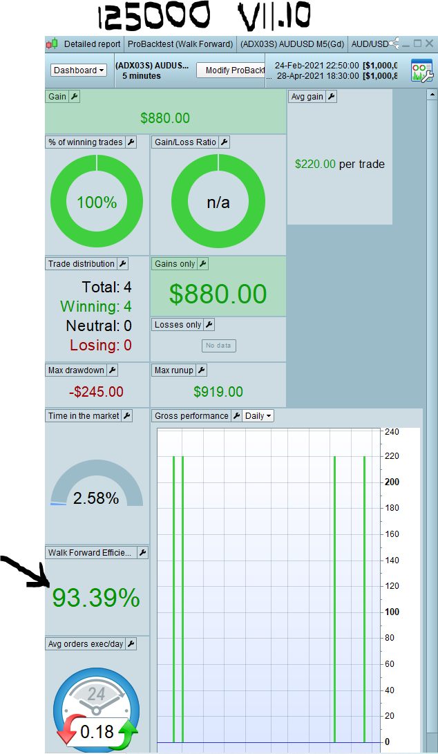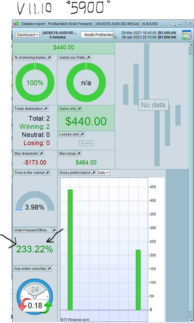 Sorry pls ignore my last queries regard to the above , I managed to solve the problem and found the WFE Ratio% now. But why when I do a backtest using the same strategy, same units(125,000) on V11.10 & V10.30 version the WFE % result are different?(see attach). Which is correct? Thank you.