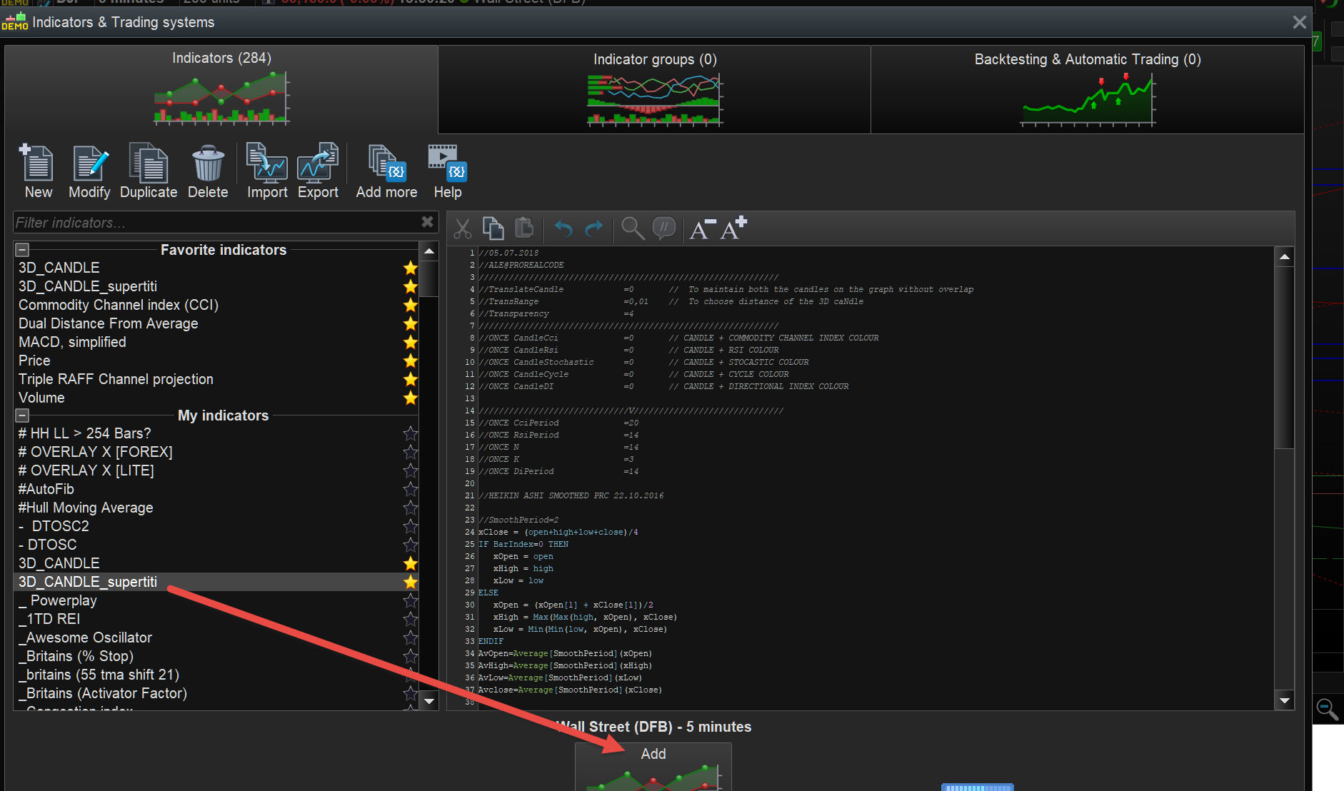 I suggest my problem is partly due to the fact that I do not add it from the ‘Trading Systems and Indicators’ window?