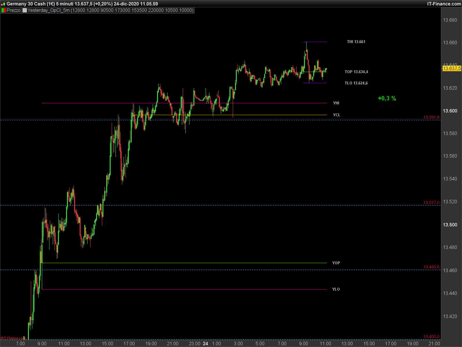 My indicator draw lines on the chart reporting yesterday and today Open, High, Low, Close for Dax, Nasdaq and Forex pairs and take into consideration open and close time of the session (excluding overnight). Given the different session open and close time, it distinguish Dax, Nasdaq and Forex pairs using price. So, for example, Dax open is set at 9.00 AM and close at 5.30 PM. In order to recognize the previous day and detect the relative open, high, low and close values, I use CurrentDayOfWeek and set as previous day = CurrentDayOfWeek-1 or previous day=5 (friday) if CurrentDayOfWeek is 1 (monday).