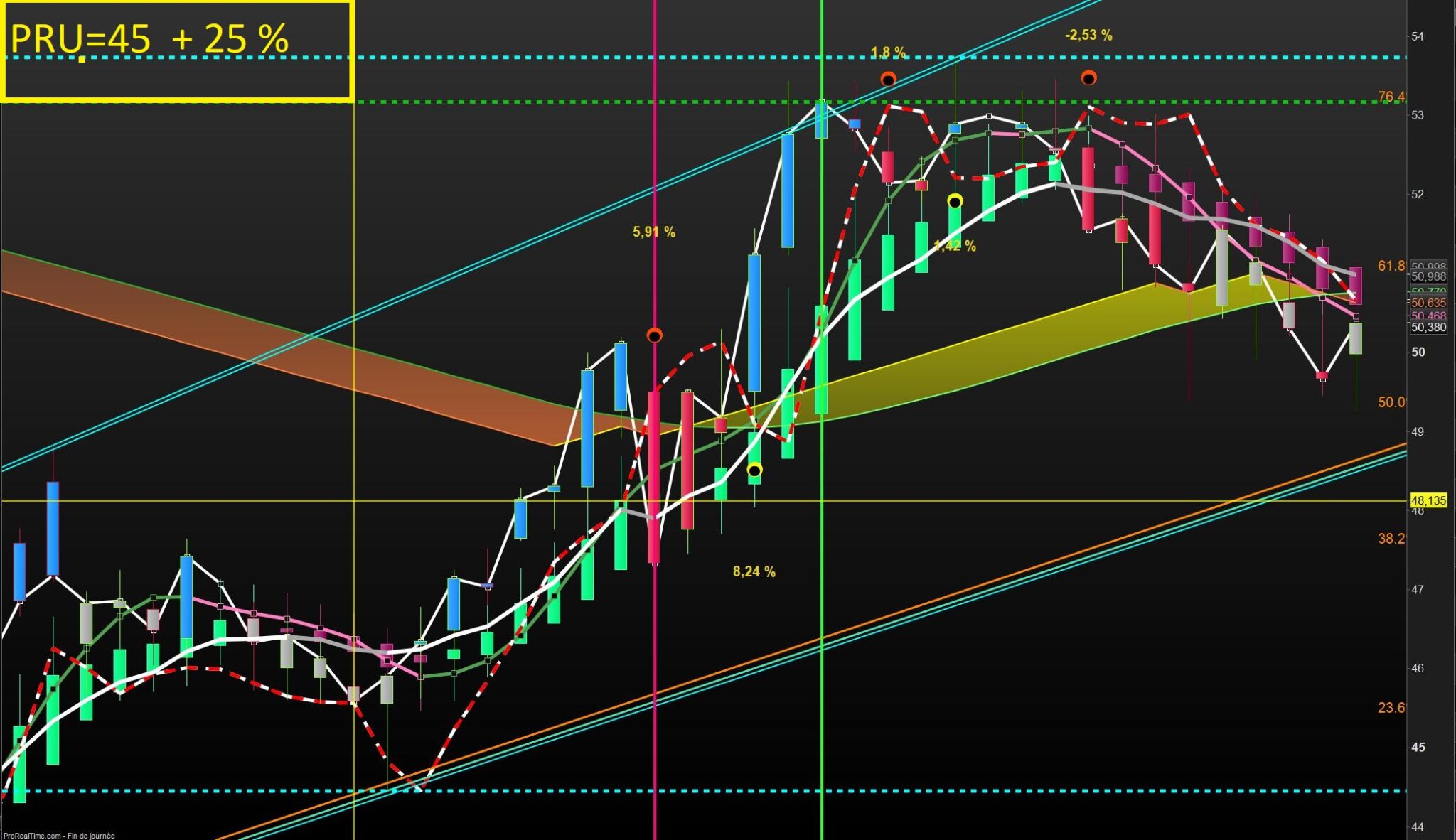 Serait-il possible d’intégrer une boite en haut à gauche du graphe où l’on aurait le Prix de Revient Unitaire de chaque valeur avec le pourcentage de la clôture du jour