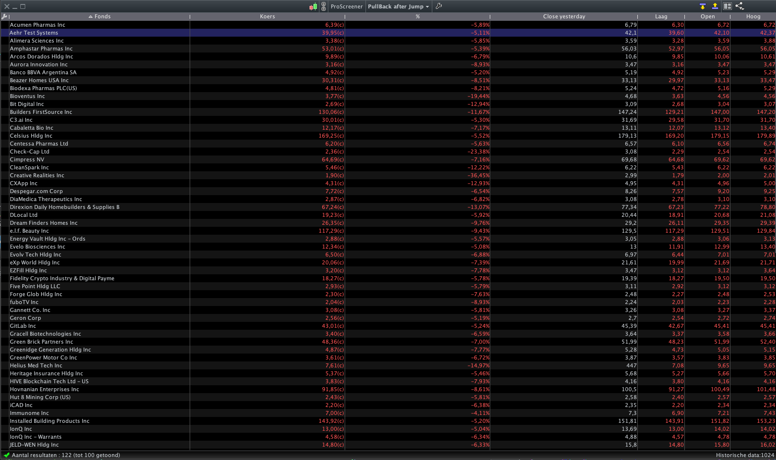 It seems that it only shows stocks that have declined 5% yesterday. I am looking for all the stocks that have risen at least 30% in the last 90 days and are now at least 5% lower then the highest price in the last 90 days.