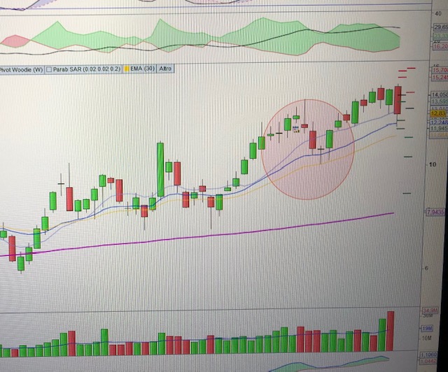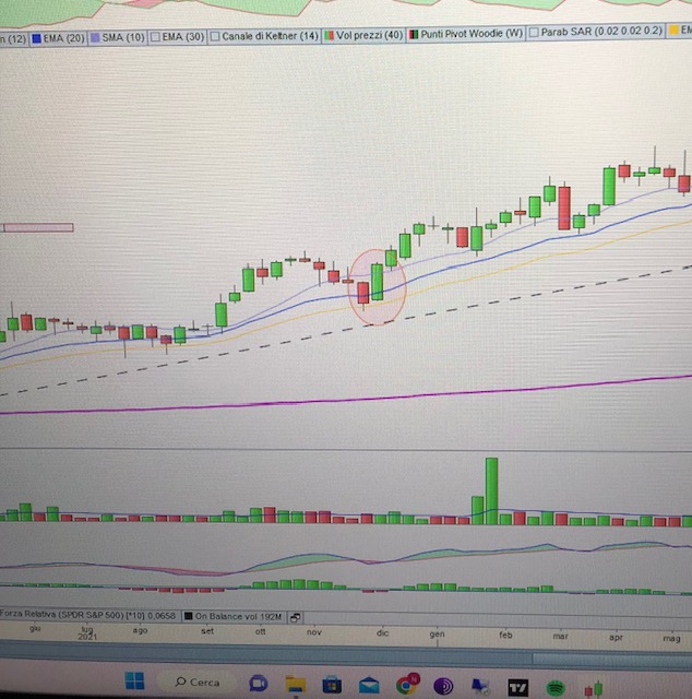 (Il volume durante le barre di pullback dovrà essere minore di quello durante la fase impulsiva, che dovrà avere una mediana crescente (utilizzo una media semplice a 20gg sul volume). Questi criteri sono opzionali nello screener, non sono facili da codificare magari ma è una condizione da controllare una volta che lo screener ha prodotto un risultato.)