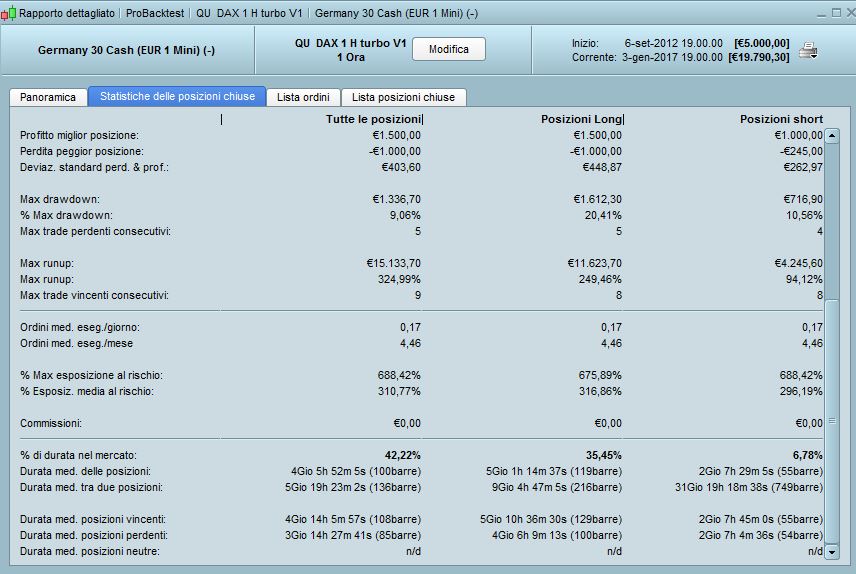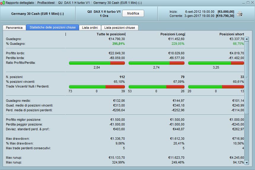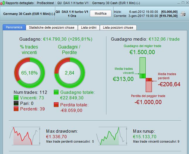 OK gli indicatori sono presenti, ora dovresti trovare la strategia nel menu, ed avviarla. QU_DAX_TURBO, time frame 1h, DAX 1€ CFD INDICE