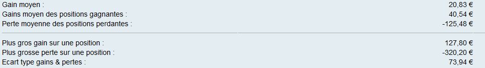 Donc j’ai pensé à regarder le ratio “écart type gains et perte / gain moyen” (voir pièce jointe), mais j’ai des doutes sur sa significativité. Avis aux matheux du forum dont je souhaiterais connaître leur point de vue là dessus !