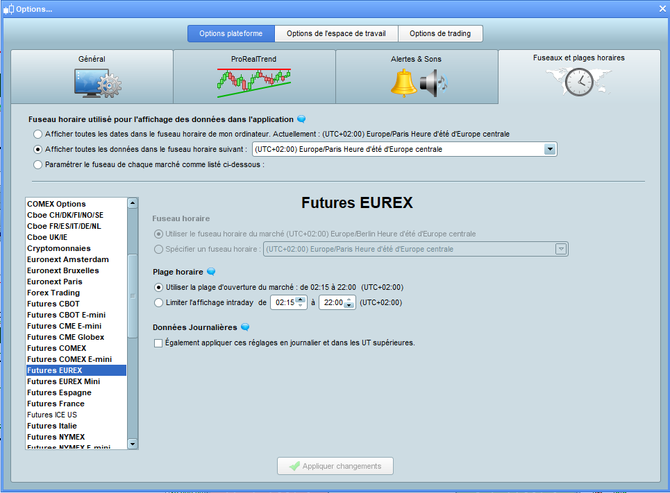 L’heure de cotation standard Future CBOT E-MINI est de 00H00 à 00H00, et pourtant la clôture du jour précédent n’est pas positionnée à minuit, mais à une heure que je ne comprends pas.