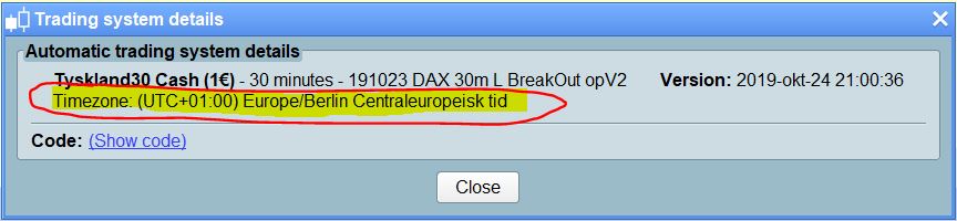 The answer I had from ProRealTime was that each system that you set live is associated with the time zone setting that is in effect at the time of of launching the program live. In other words, if I start live trading ot eg. a system that trades DAX and I have UTC+1 at the time, this will be the setting for system as long as it live trades. If I the start live trading of eg. a system that trades the DOW and I have changed settings while for example backtesting this algo to UTC-5, then if that is still the seeting at the time I launch the system live, that time setting will be associated with that system. The timezone associated with any system that is trading live can be seen if you click to view the details and code of any live system which is shown in the list of Running systems in the ProOrderAutomaticTrading