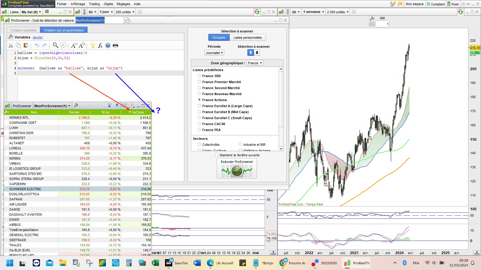 Mais il n’affiche qu’une seule colonne de screener à savoir celui de “haClose”