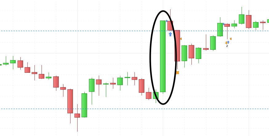 The idea is to detect an abnormally large candle