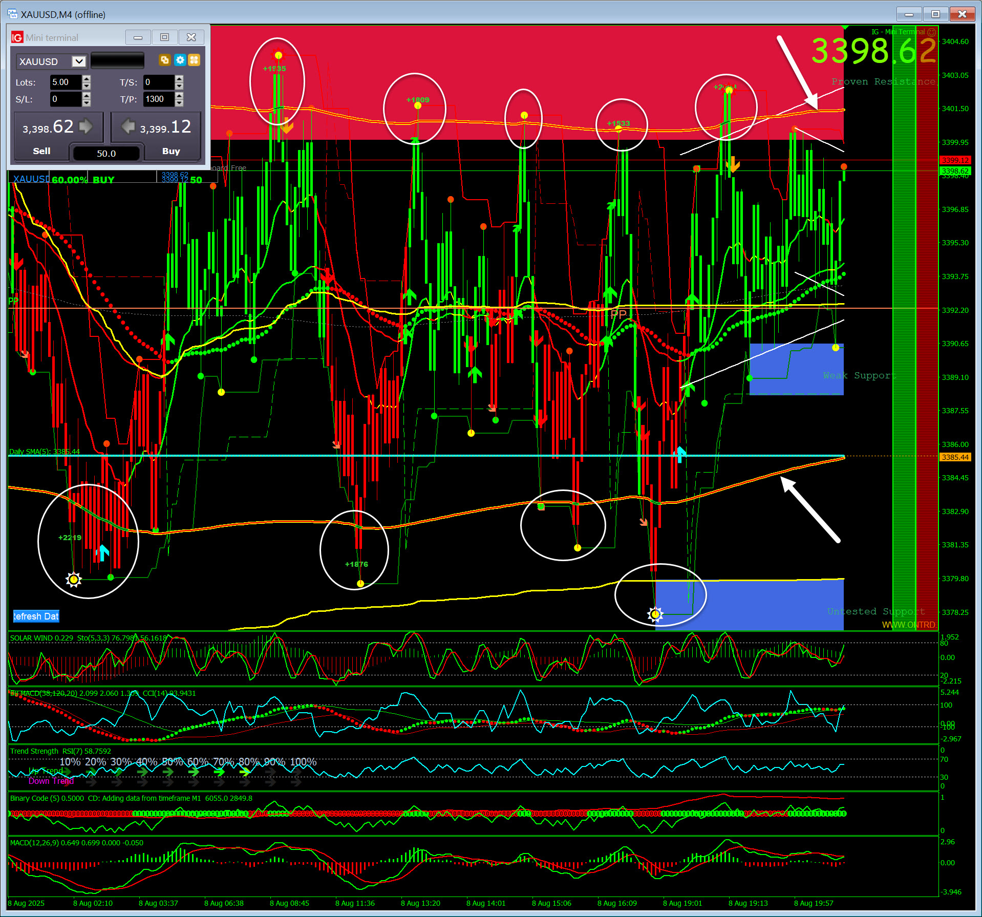 As you can see attached I have the same setup on MT4, with an indicator called Cap Channel and an EA which can pick up trades buy or sell when below or above the channel, I tried to get the source code for this channel to convert it to PRT, but unfortunately failed so far. Now you may ask a good question if you already have it on MT4 where you ca Auto trade it there, why you are after Auto trading it on PRT? the answer is with too much complicated charts like this MT4 freezes particularly when fast moves during news or at the open of the US session, while PRT streams very well all the time