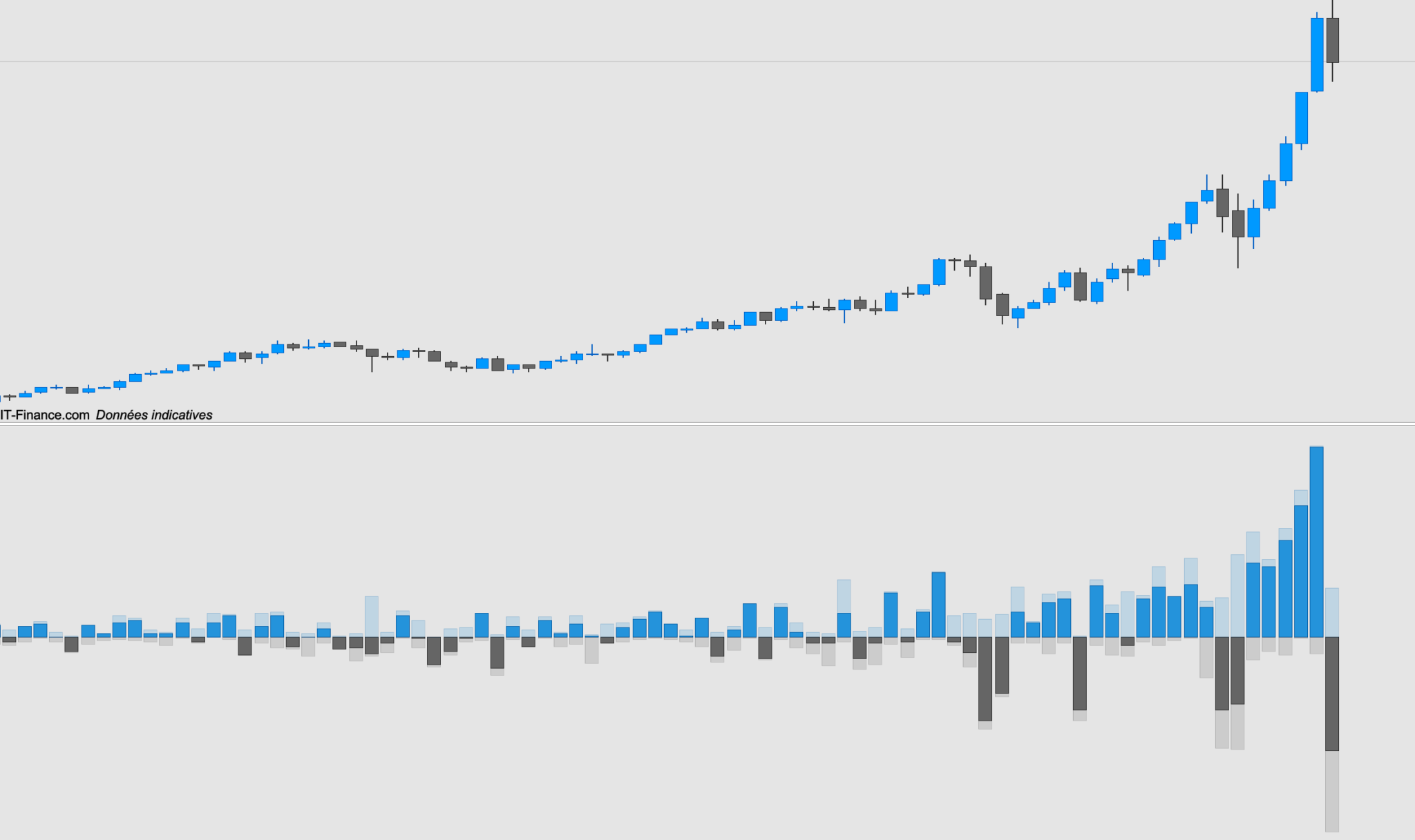 As a reminder, this indicator uses the candle body and the wicks to give information sticks, as a candle does in itself .