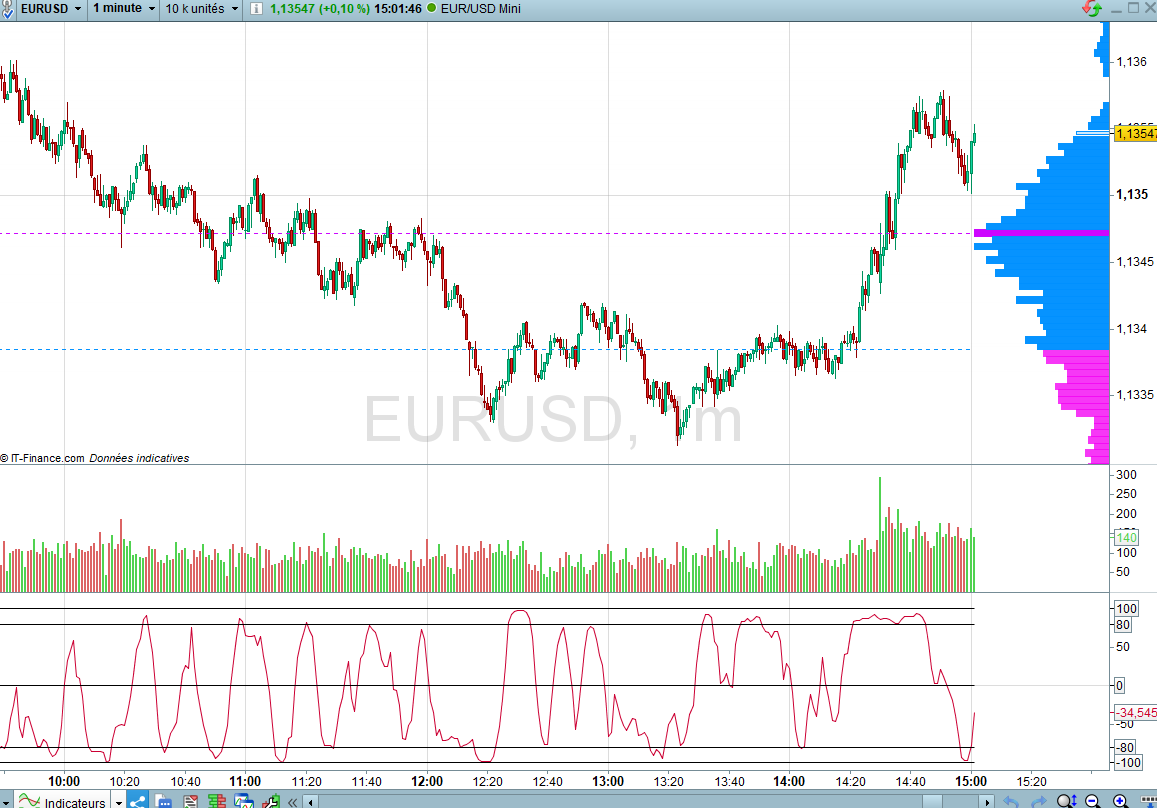 les niveaux sur IG sont 80 et -80 et je trouve que c’est un très bon indicateur de tendance et de retournement.