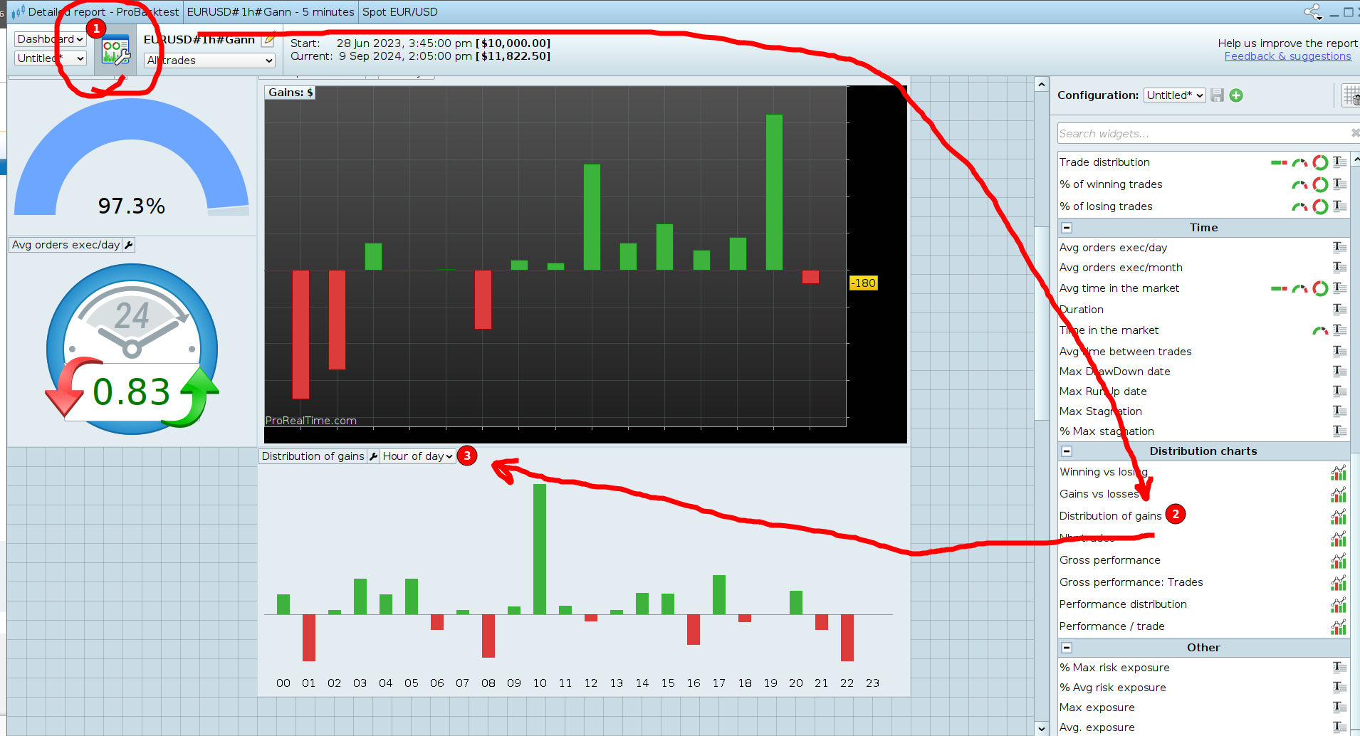Ciao. Sì, devi aprire il report dettagliato e configurarlo aggiungendo il modulo di distribuzione degli utili. In questo modo vedrai un grafico come quello che mostro nello screenshot. Un'altra possibilità sarebbe quella di esportare in Excel e lavorarci sopra.