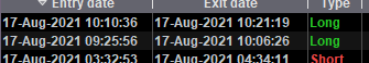 In theory there’s the situation that two e.g. Longs follow each other closely, but that the second buys at a lower price than the first exited. In my current history I can’t find an example of that – which is a good thing because it would be off to happen (I would have bought in the down-going (though short term) trend.