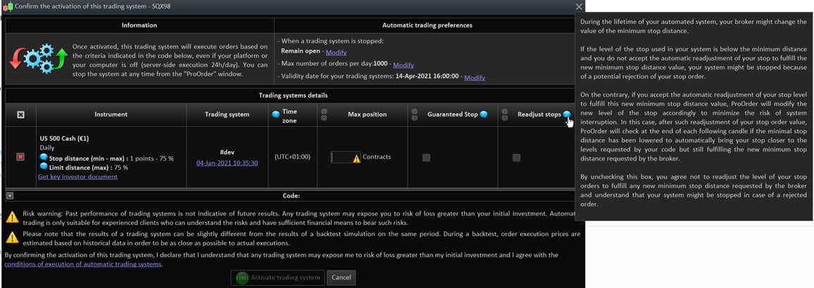 For people asking, please find attached what is readjusted stop and how you can allow your system or not to use them. If you ask me, I think that’s ok to use them, there are so many systems stopped because of the IG stop distance change during live trading! There are countless topics about that in forums..