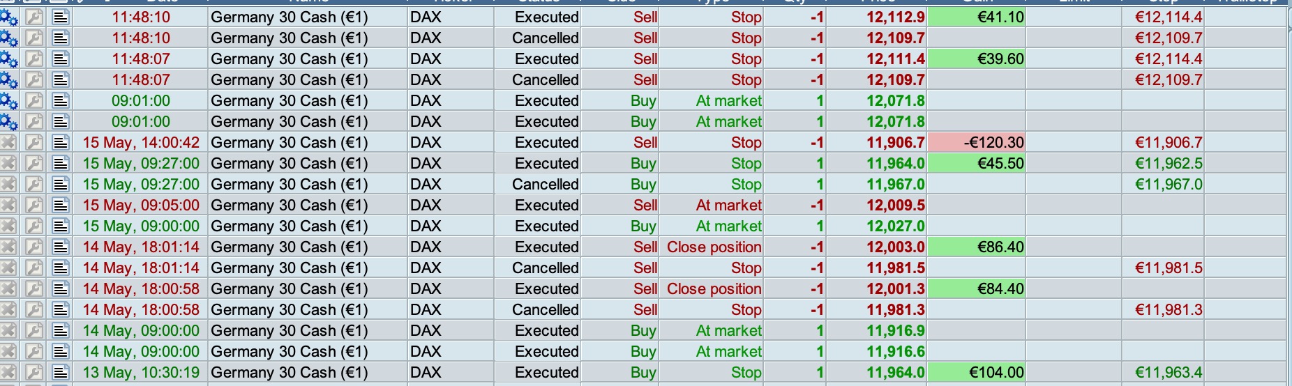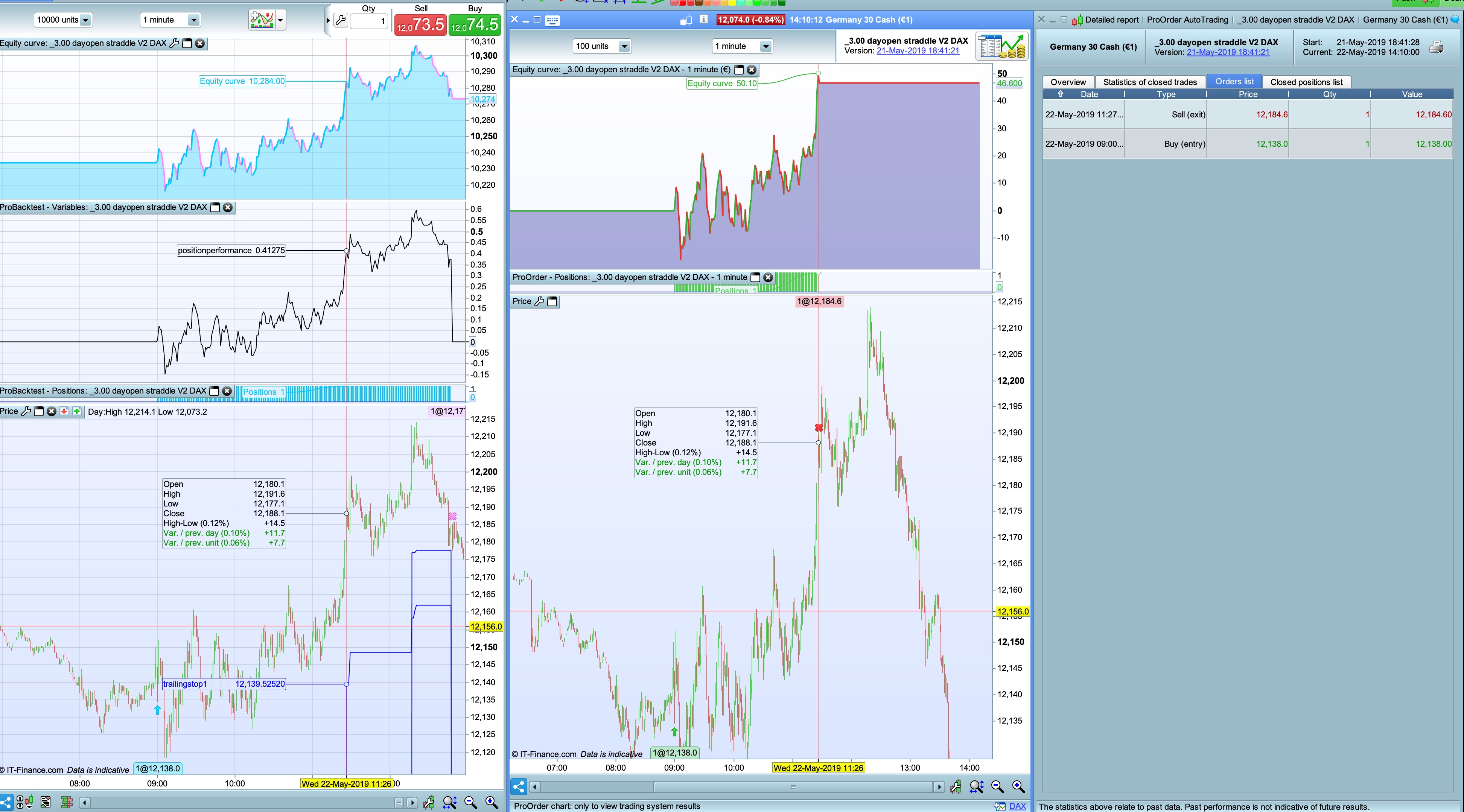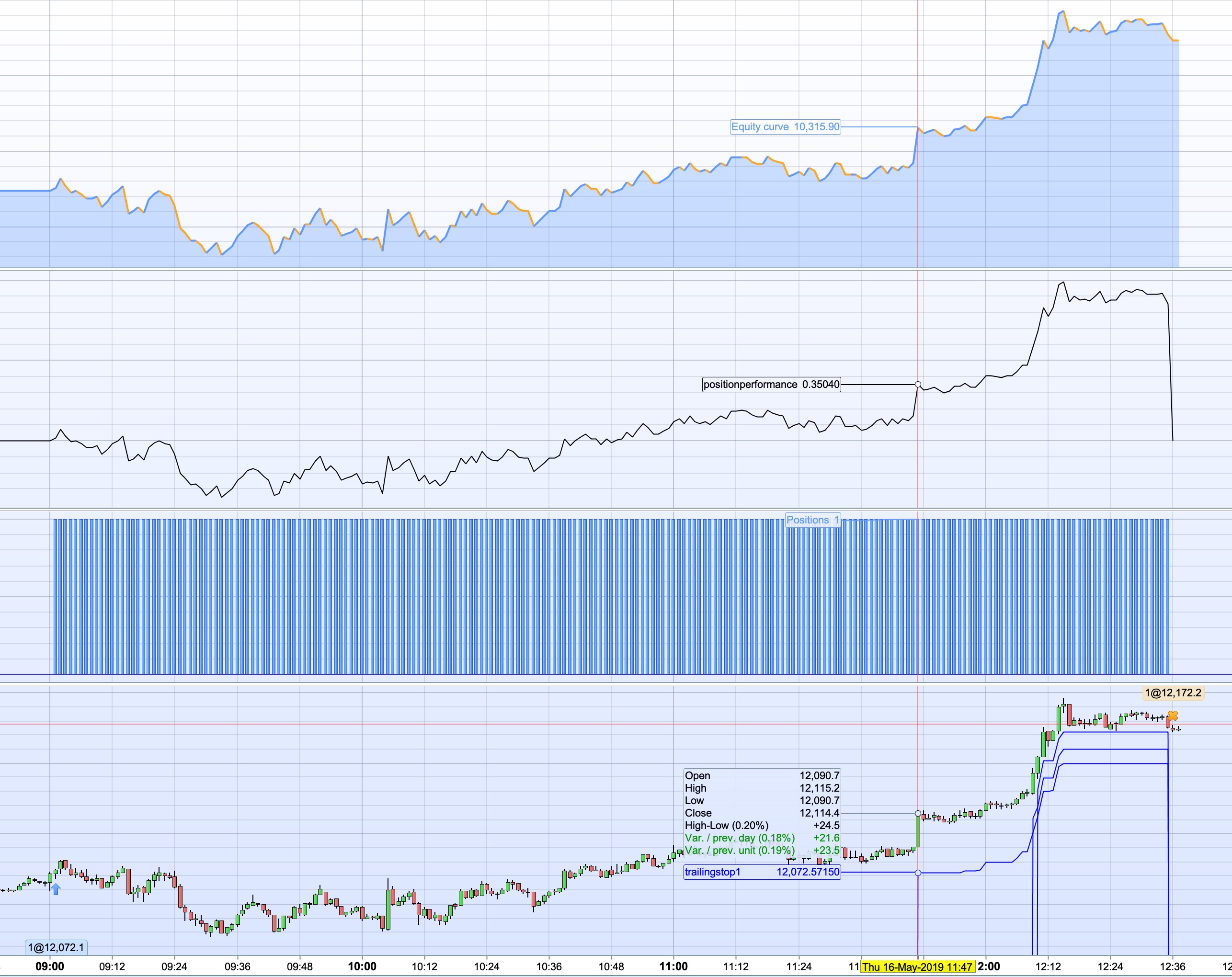 The question is, why is it selling at 0.35% sharp while that’s the level the trailing-stop should kick in? It works beautifully in the backtest, but it has to work realtime the same, all the time!