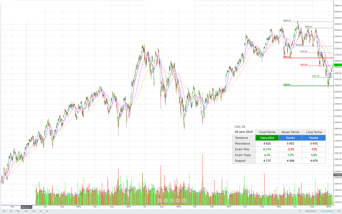 Les supports et résistances court/moyen et long termes utilisent des périodes bien entendu différentes. Il y a une multitude de façon de trouver des supports et résistances, sans plus d’explications ou quelques détails, ça semble compliquer de reproduire fidèlement les mêmes niveaux.