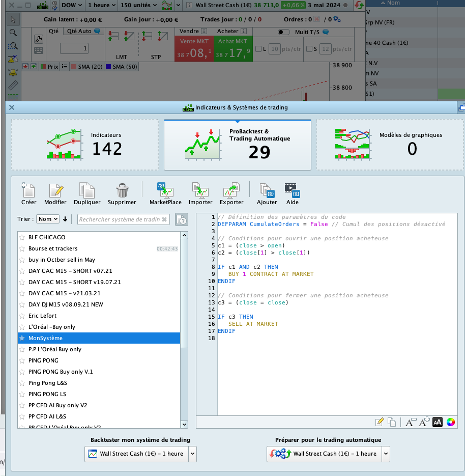 Sauf le trading de systèmes dans ProOrder ?