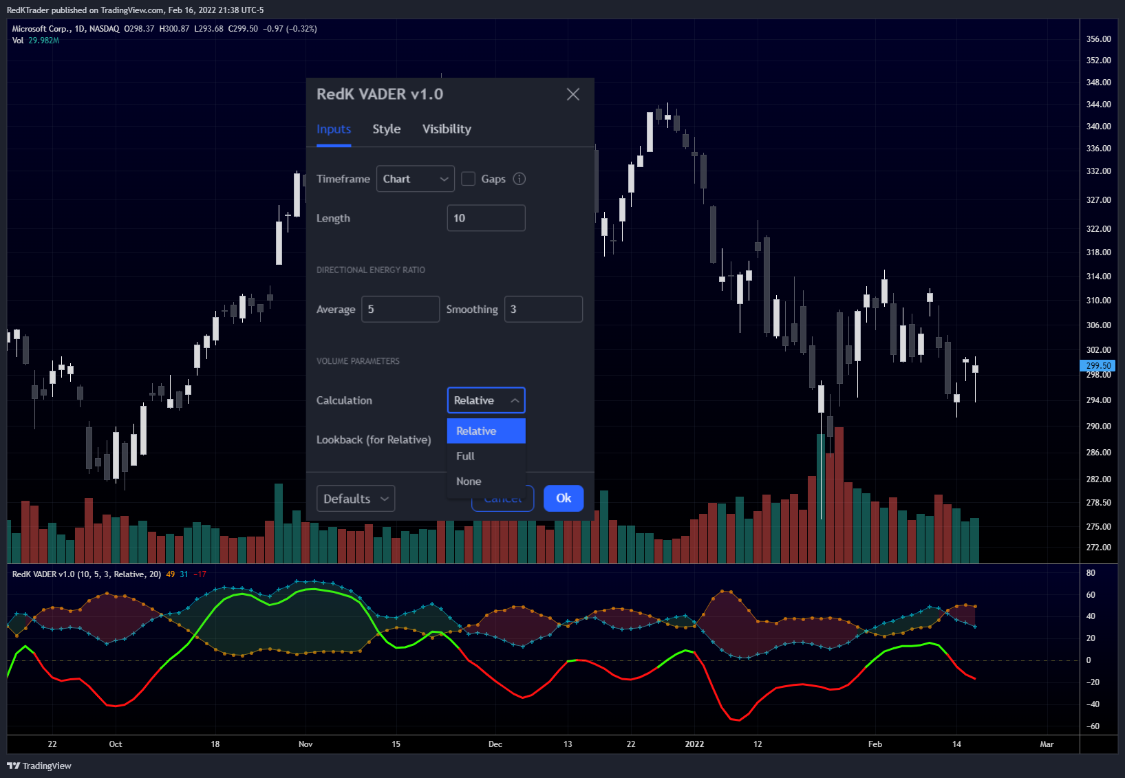 indicator(‘RedK Volume-Accelerated Directional Energy Ratio’, ‘RedK VADER v2.0’, precision=0, timeframe=”, timeframe_gaps=false)