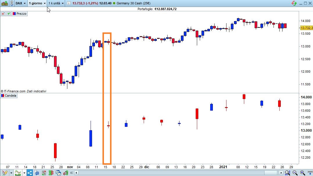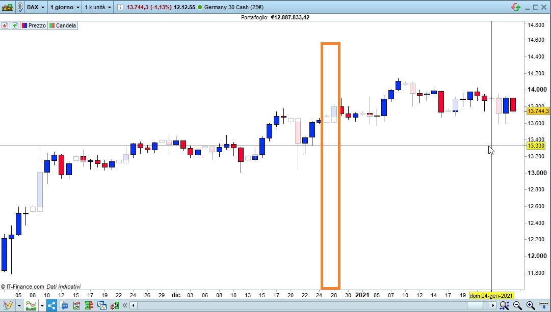 La deuxième solution est un indicateur sur le graphique qui imprime la bougie du dimanche en blanc (la rendant presque invisible) et imprime AU-DESSUS de l'original du lundi celui comprenant dimanche + lundi: