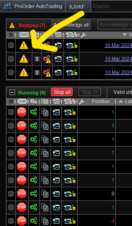 - As soon as I click the yellow triangle, that System then goes down to the Not Running section.