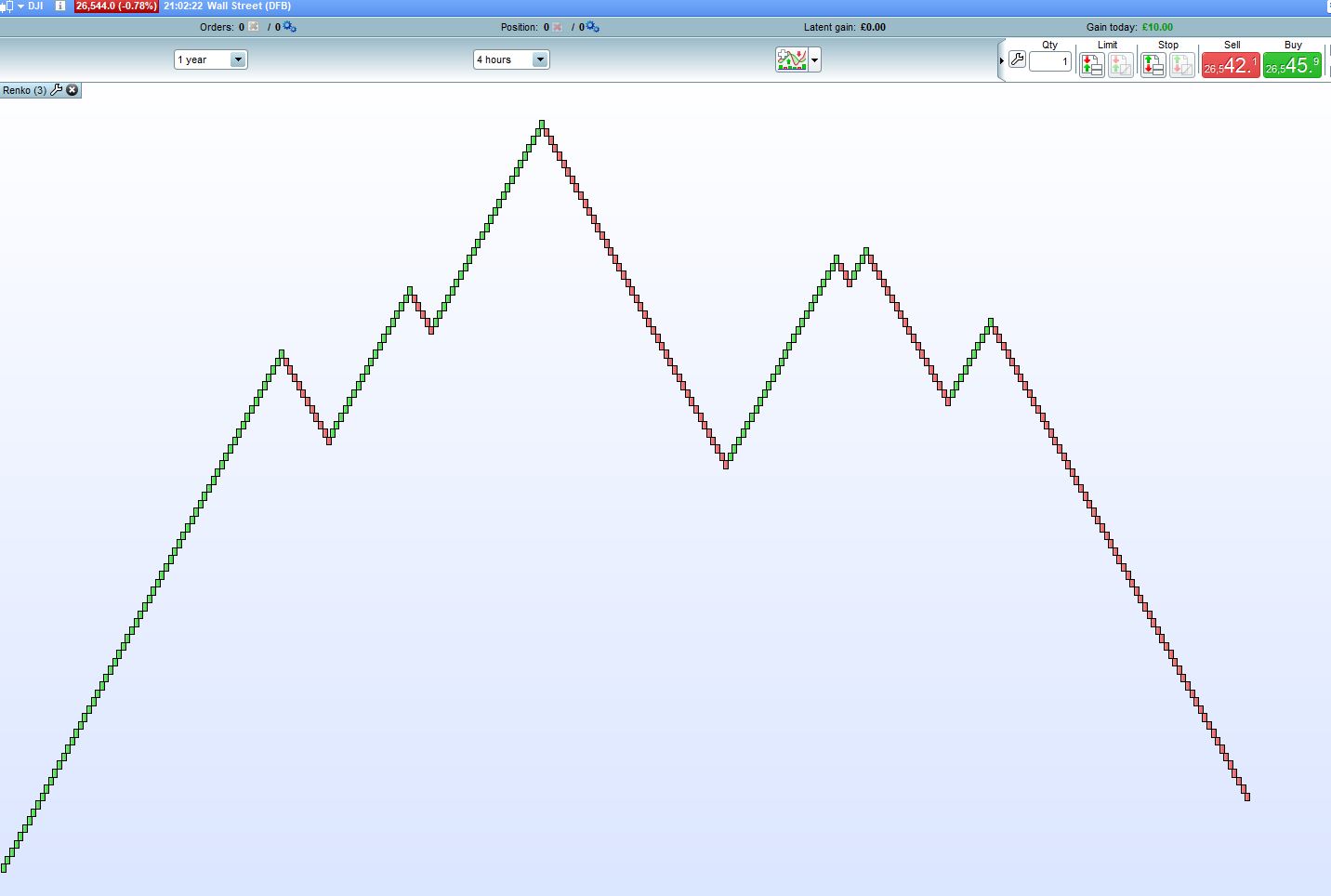 I would like to have a strategy based on 3 point Renko bars using the 4 Hour time frame for context. Please see the screenshot below.