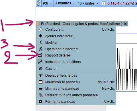 - “1” in first image is where to left click on probacktest profit & loss window title to make menu appear