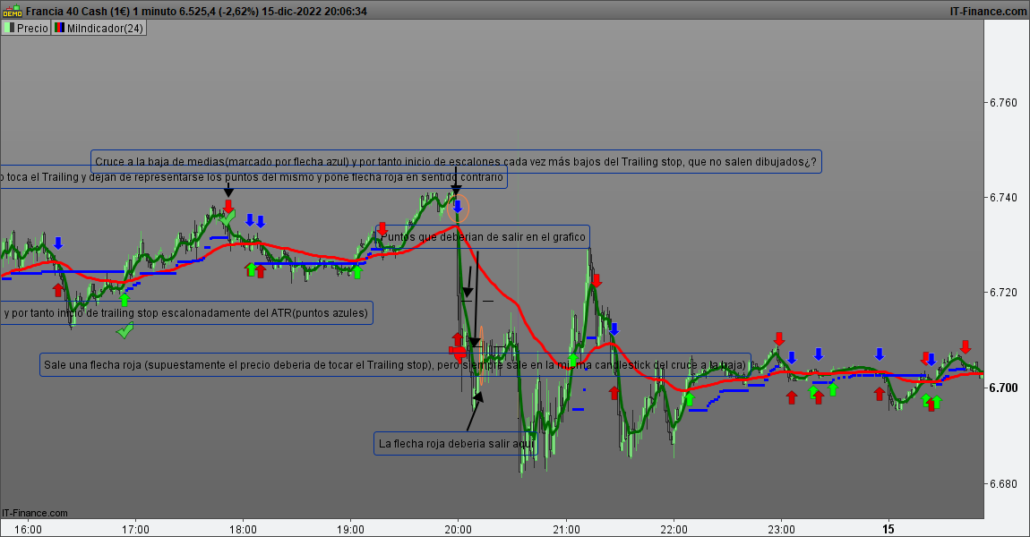 //El ATR se representará como puntos (similar a fractales), cuando el precio cruce el Trailing Stop, se cierra la representación mediante una flecha en sentido opuesto a la inicial del cruce de las medias.
