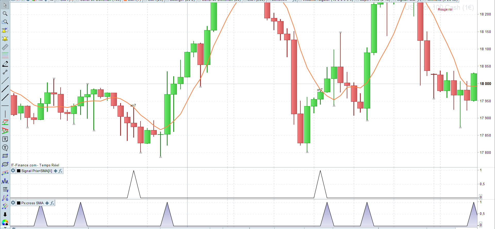j’aimerais tester un truc, mais je ne sais pas si c’est possible. Je voudrais savoir à quel niveau de moyenne mobile simple correspond un prix.
