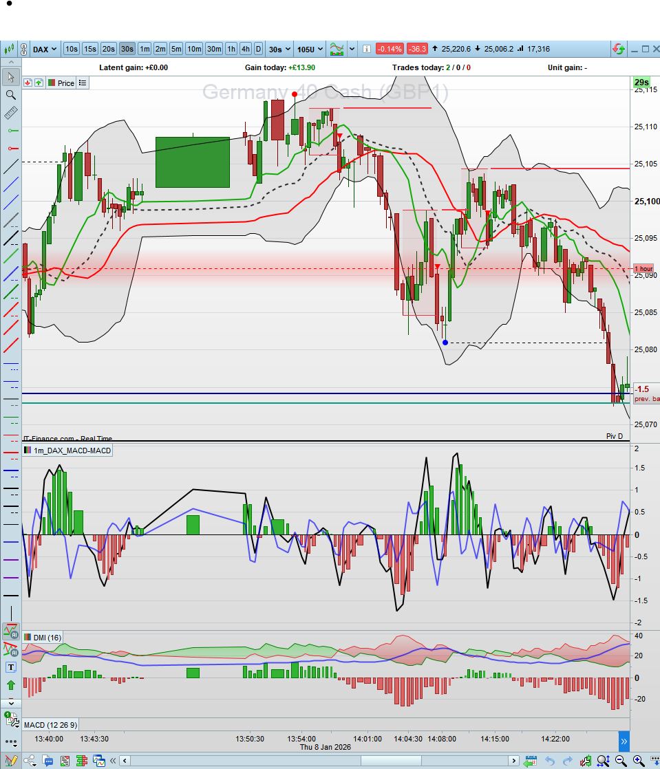 I use 3 screens. 2 large ones for 1min+30sec timeframes and small screen for 15sec timeframe. Obviously change the timeframes to longer times to have better idea of the general market trend etc.