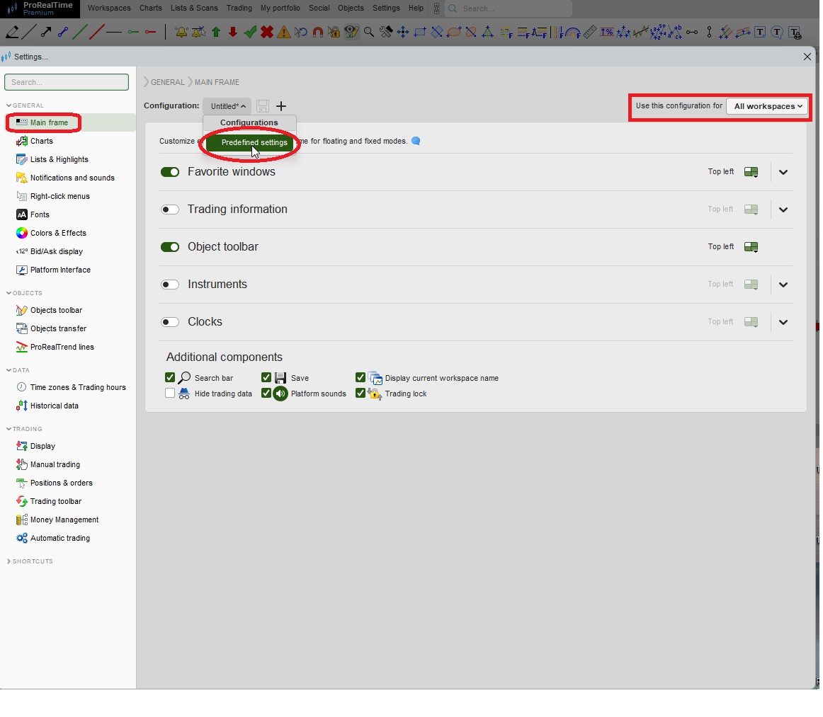 As you can see from the attached pic X, you can restore the default value by clicking predefined settings in the main platfrom settings.