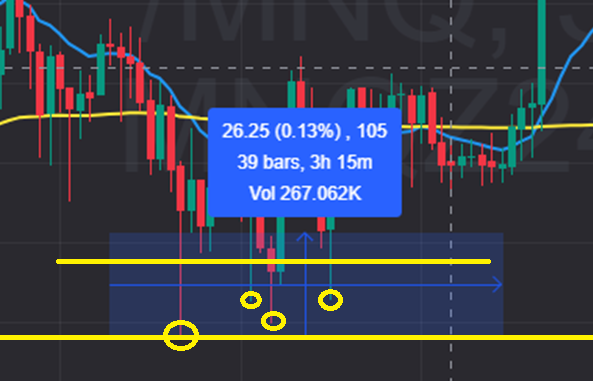 - each candle must be within a size of 35-85 points (the difference between its high and low).
