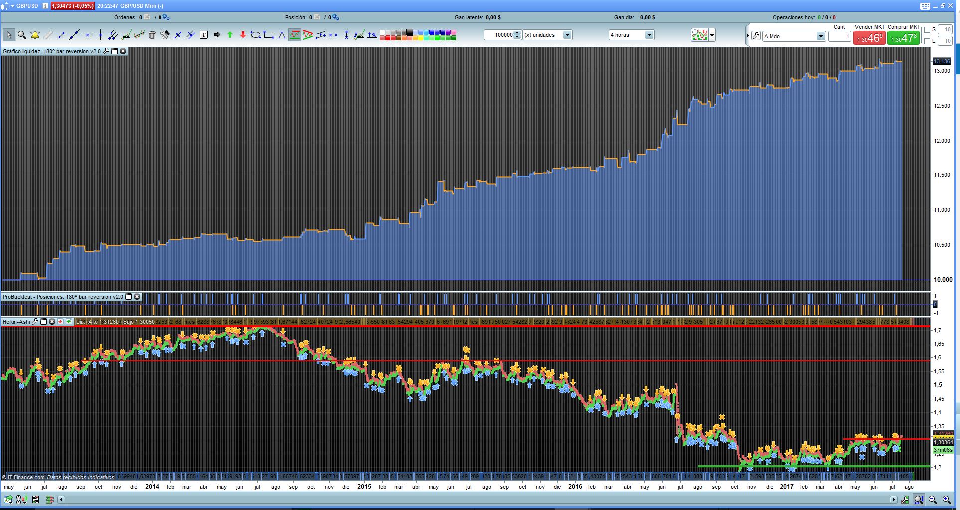 Hello all, this is the latest version of my reversion bars strategy on GBPUSD, it has been optimized and its running better, also i have backtested on 100000. If anyone want to kindly backtest this strategy on 200000 bars, be my guest and please share the results =D =D Thanks and good trading