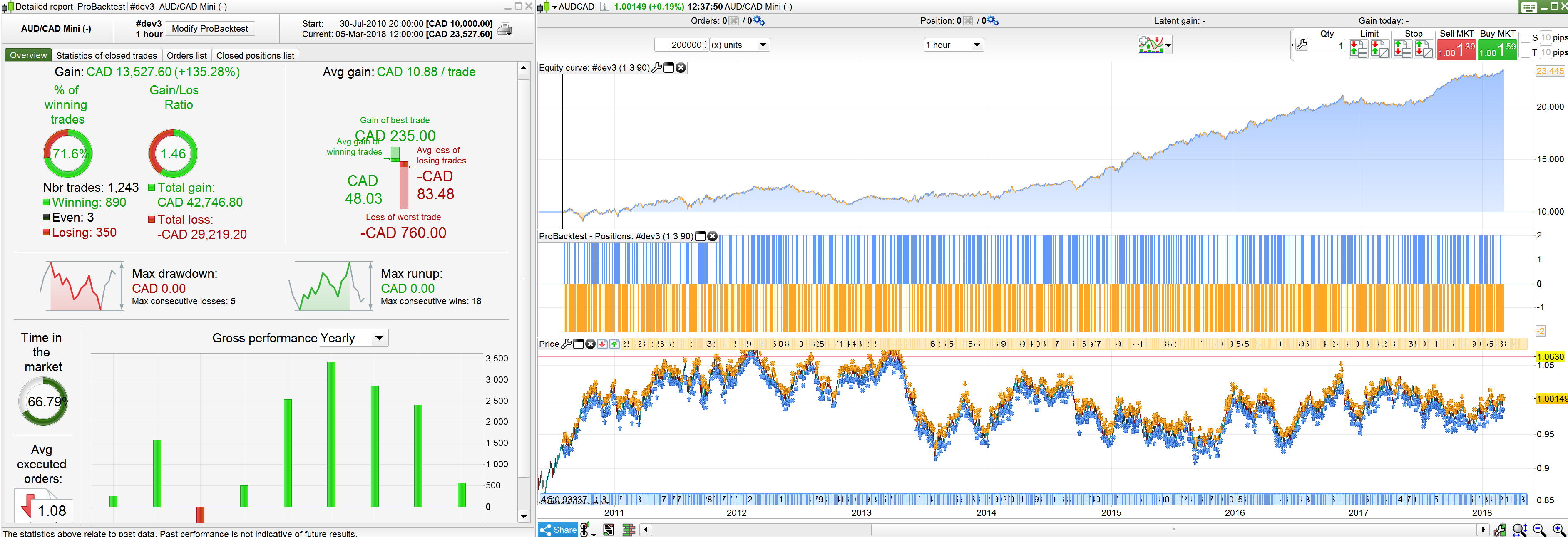 With 15.000 bars from 7 February till 4 May 2018 it gives a robust profit of 2.945 CAD in 3 months (I did no IS/OOS testing) with M=3, N=2, L = 50 and S = 40, in 398 trades, spread 1,7 pips calculated