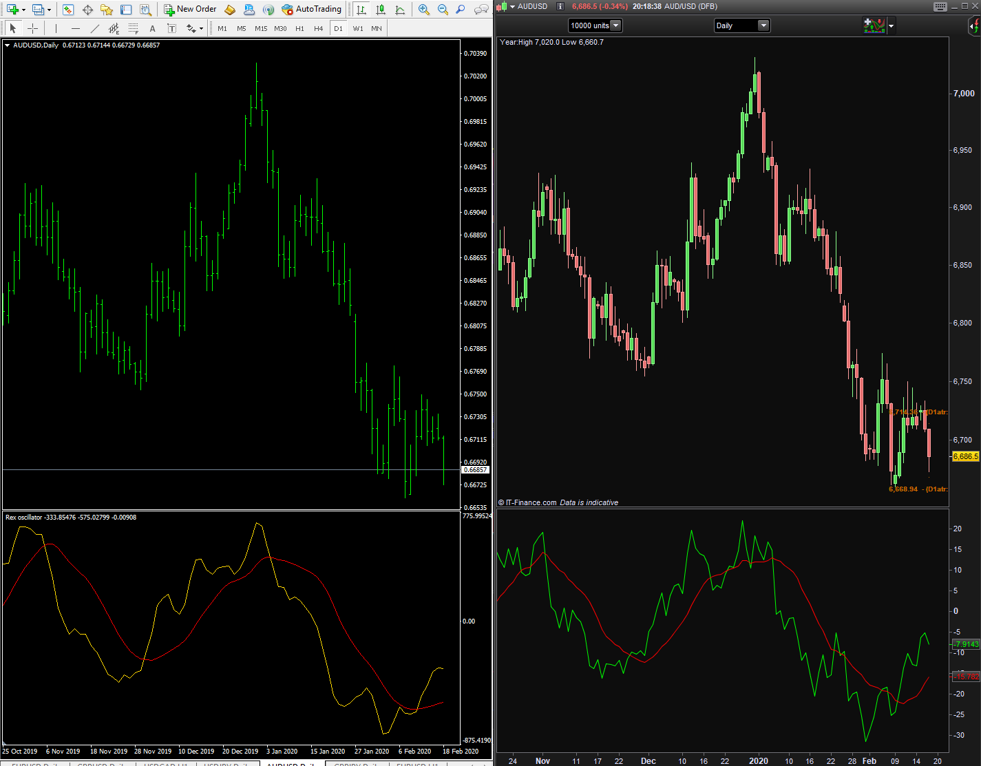 I am afraid rex oscillator is not the same as the one that on Prorealtime someone’s changed something in the coding to make it smoother it’s not the settings I’m not sure what it is. If it’s not too much to ask when you have some time to take another look at the coding to see what’s smoothing out one of the lines you can see from the picture that I’ve shared in this post