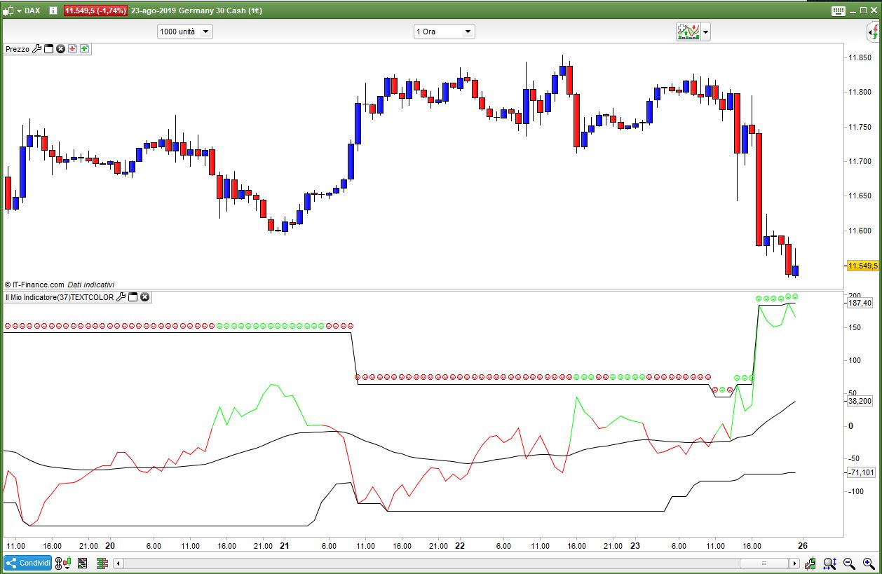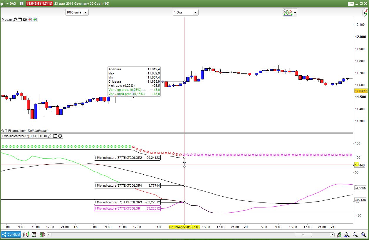 Because this is what I get, see below. And it is these colours that a) seem to change from the red/green spectrum to what you see below. B) when the same code is applied to ‘text’ in the price panel it freaks out.