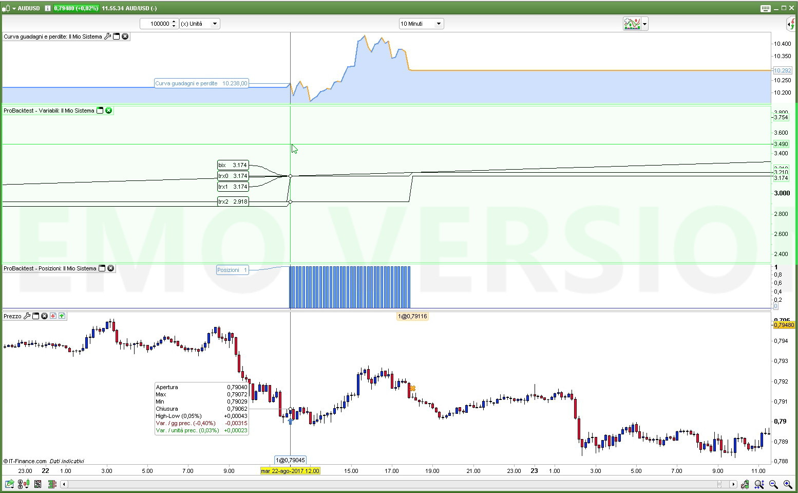 Questo è una semplicissima strategia, dove, con GRAPH, puoi vedere i valori di BARINDEX e TRADEINDEX