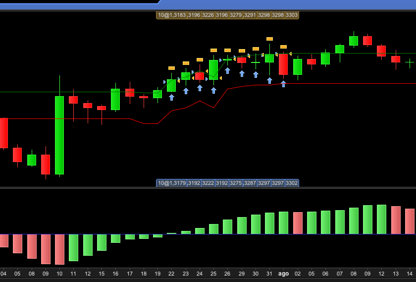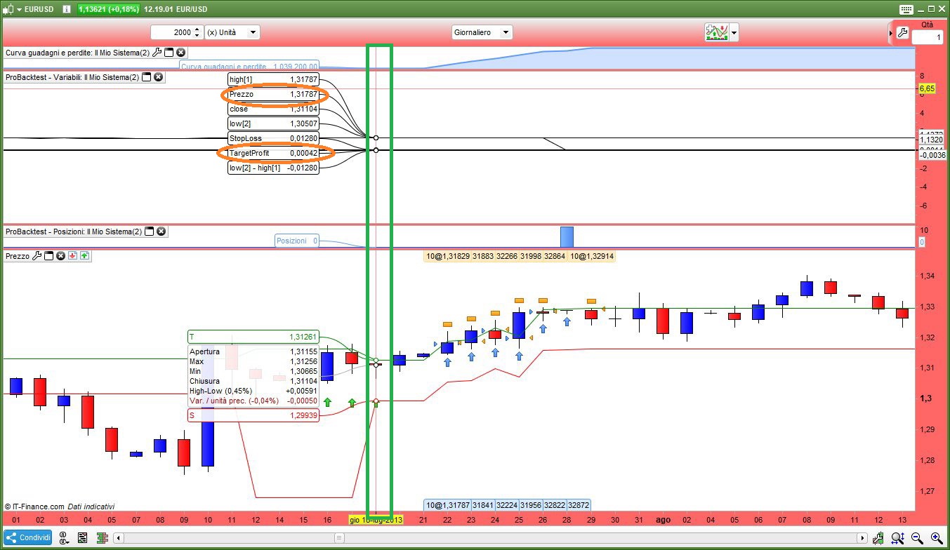 (nell’esempio allegato, il pattern è avvenuto correttamente nelle giornate del 16,17 e 18 luglio 2013 e siamo entrati correttamente in posizione il 22 luglio 2013 al superamento del massimo del 17 luglio 2013. poi si è verificata quella strana sequenza di operazioni. l’operazione si sarebbe dovuta chiudere in TP in data 31 luglio 2013)