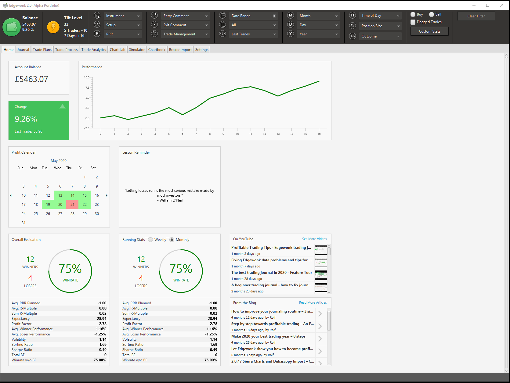 At the moment due to only starting some of the systems at the end of last week only five trades have been taken with four winners and an overall return of 2.52%