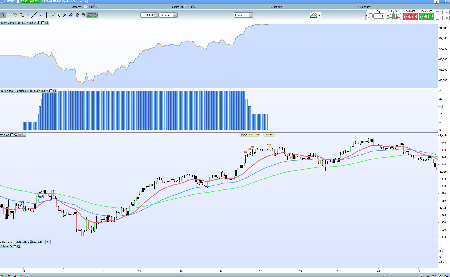 Hello! If I already have it tested, without accumulating orders, in ig, the minimum position for s & p500 is 5 contracts, ideally I would accumulate orders but from there, instead of 5 in 5, I get only 1 each time Meets the condition, thus maintaining the percentage and ratio