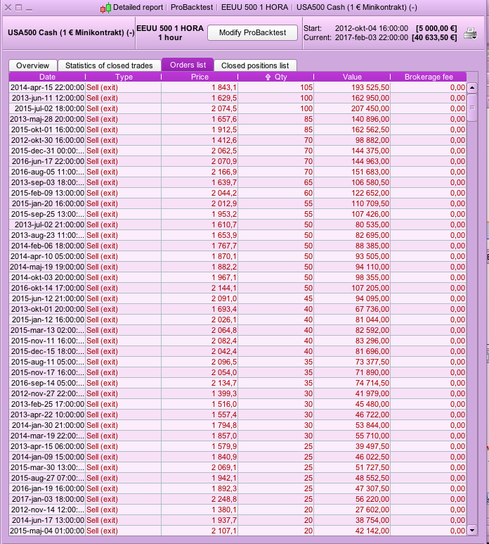 Thanks for this Raul. I attach the 200,000 units results. It seems fairly consistent with the exception of 2010 and 2011 which were bad years. The drawdown is too big at 42% for 5k of capital so you would need at least twice this amount to run with this strategy. I have run it in tick by tick mode but I do notice something strange about the zero bar trades P&L and entry trades timelog in general. I took an example of the 10/02/16 – 18/02/16 opening and closing trades :