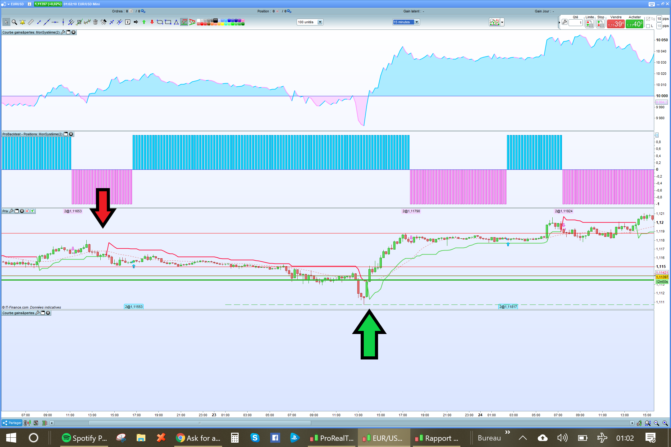 Je voudrais crée un robot avec l’indicateur Supertrend. Quand la ligne passe au vert , c’est un signe haussier , et quand ça passe au rouge c’est baissier . Sur 15minutes ça serais bien je pense, je vous est envoyer une image