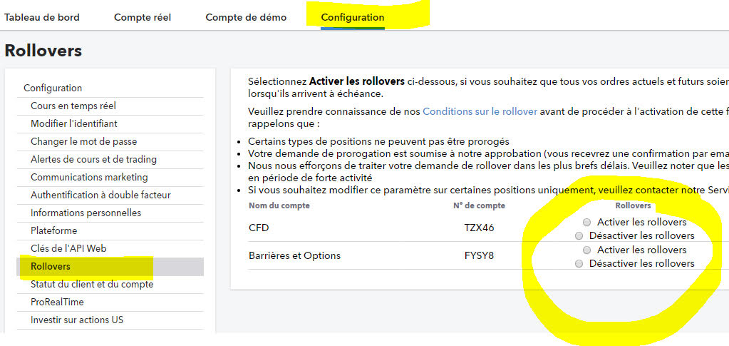 I have reached IG support and all they can say is that we can switch on/off automatic rollovers in the options (see the picture attached).