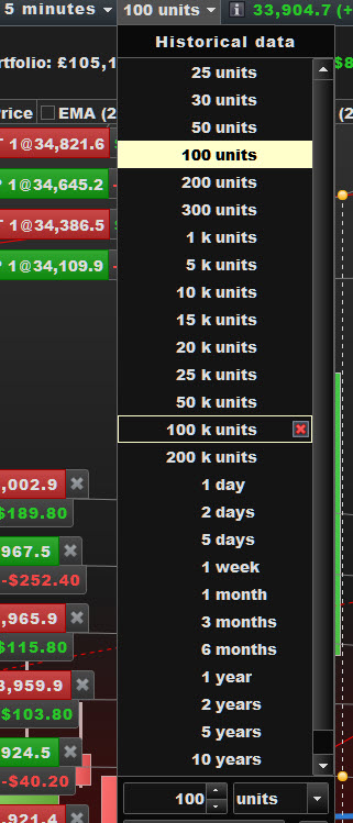 Attached shows 100,000 units x 5 min TF, but you would need to change 5 min to 1 day.
