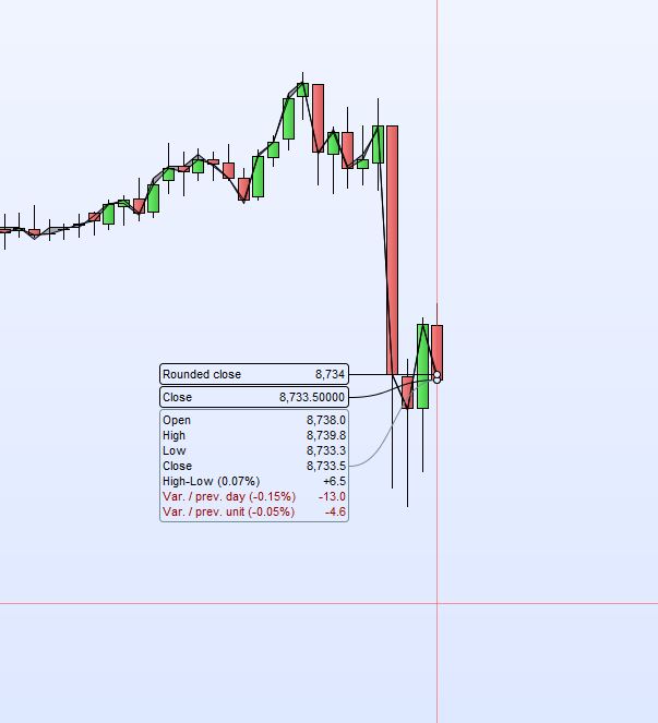 If you ROUND it you obviously lose the decimal point. If you use Close then you get five decimal points. (IG Index DFB EUR/GBP spread bet)
