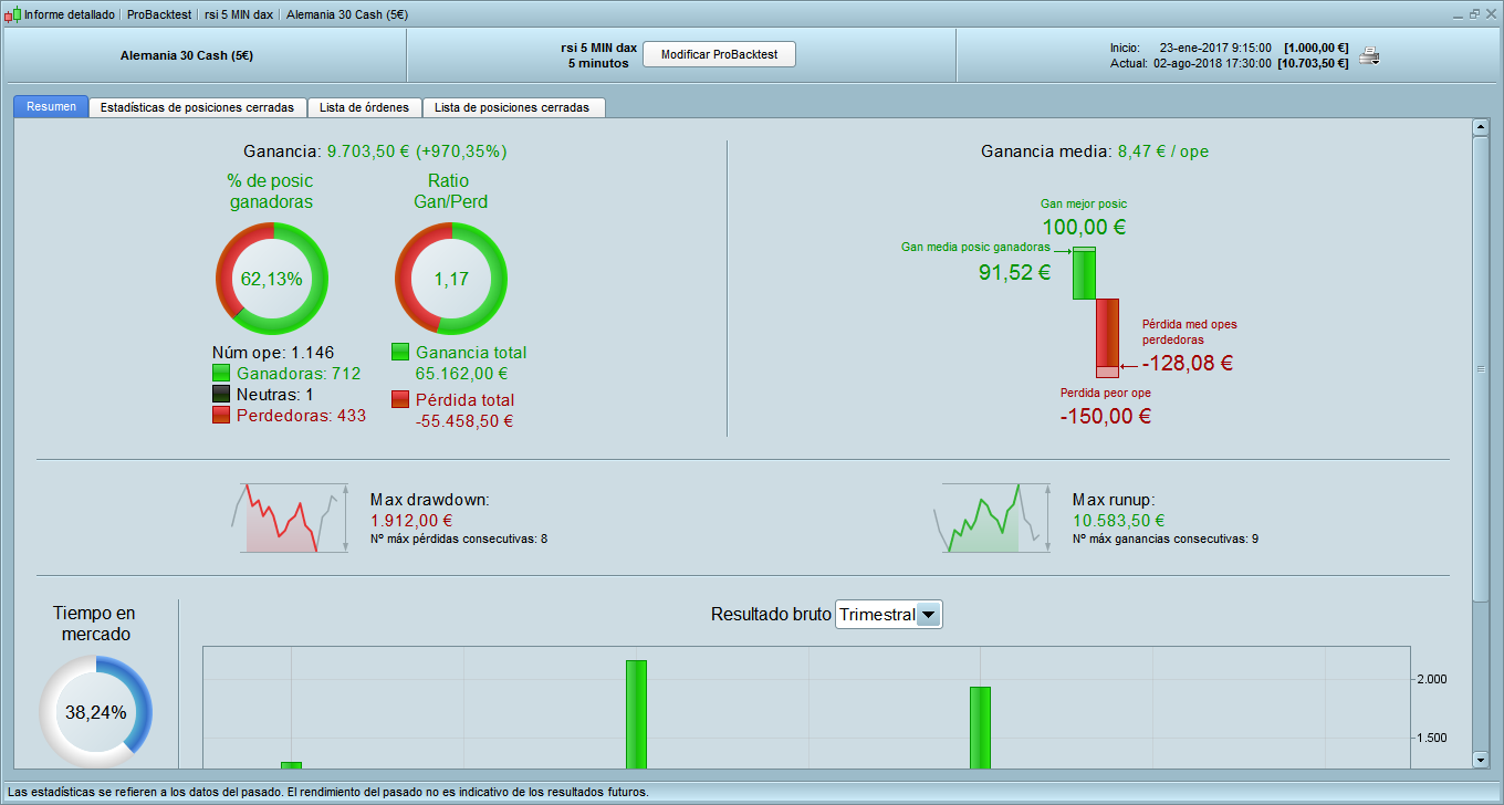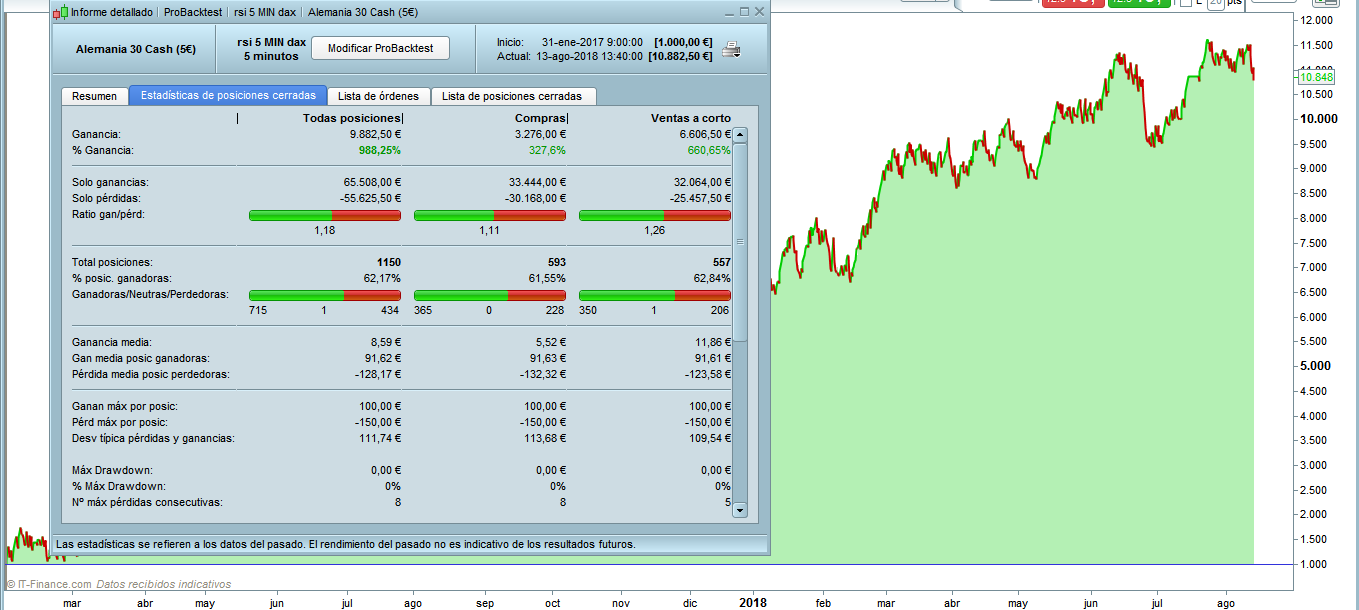 Gracias Sr Nicolas por responder..bueno..en prt solo grafico sesión europea..acotada la grafica y adaptada 09:00/17.30..dax 5€ ..1 lote por operacion ..capital inicial 1000€