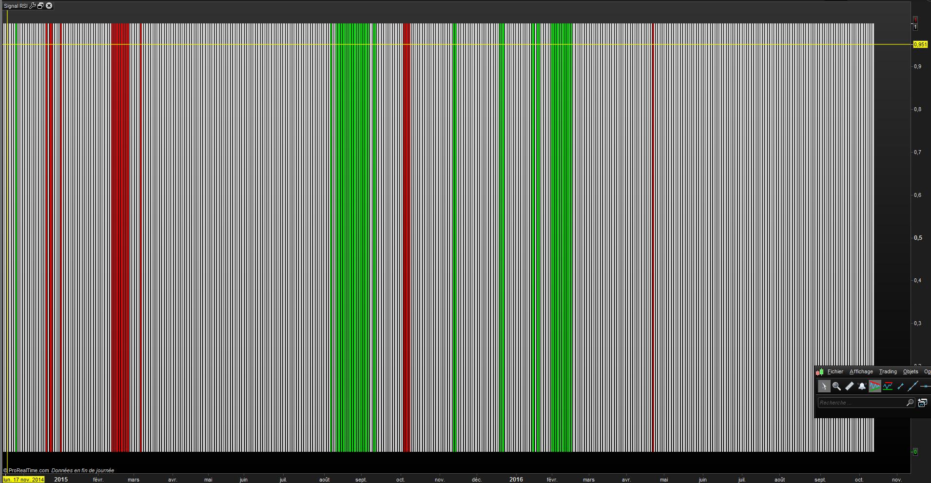 Je m inspiré d un code du screener donner dans le manuel proscreener de prorealtime concernant le retournement de la tendance si rsi sup 70 ou inf 30. En fait je voudrais déclencher un signal de vente si le rsi vient de passer sous le niveau 70 alors que le précédent était au dessus de 70. Je rentre le code