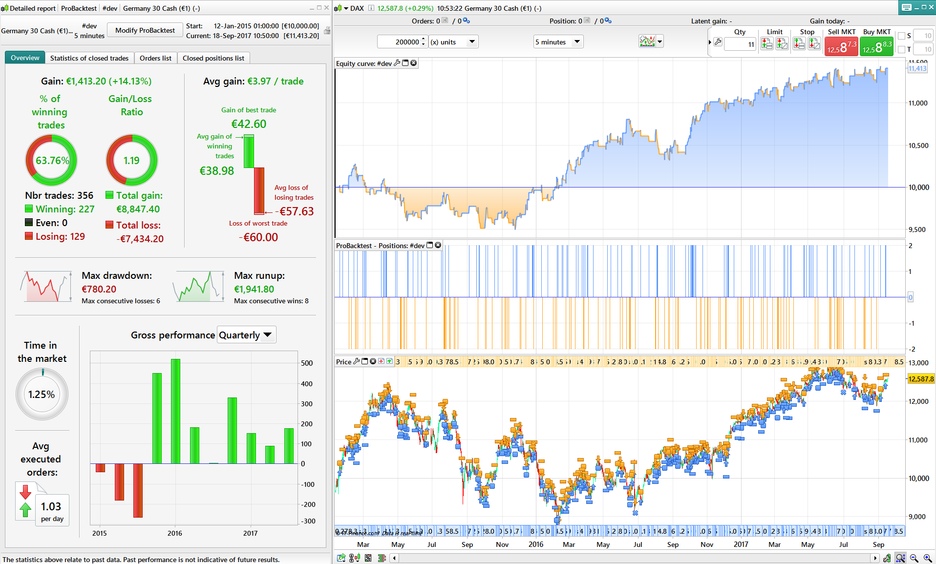 TF 5 min on CFD DAX mini, only little backtest to validate the robusteness of the strategy