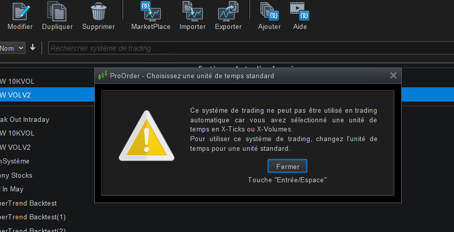 I believe the message is clear: automated trading systems cannot run with non-standard time units, such as X-ticks or X-volumes.