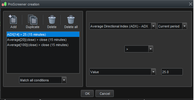 Hello! I am trying to run two screeners at the same time on the 15m time frame, one for BUY sgnals and one for SELL signals, I cant seem to find any information on this and was wondering if anyone has managed to do so and could please help me? Thank you! I currently have the screeners set through the Simplified Creaion. Thank you.