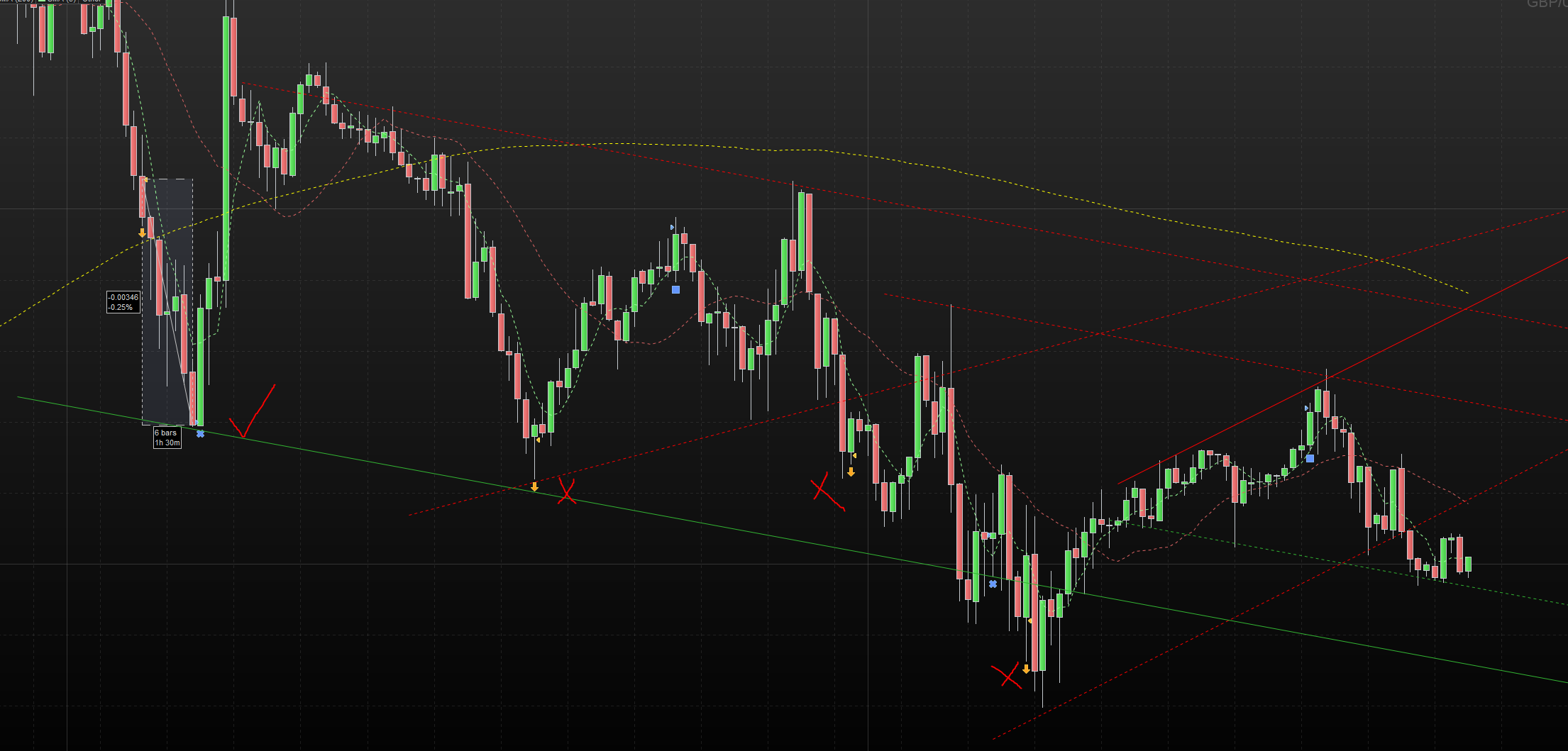 i have gotten something at the moment but it seems to half work. see picture. the red tick is the correct one i am going for but after that there is 3 red crosses which is not what i what the codes to do because it does not meet my uptrend, c1 , macup , and habullcandle15 conditions. here are my codes.